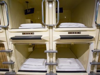 В поезде должны быть окна, это фота тоже отель - спальник.