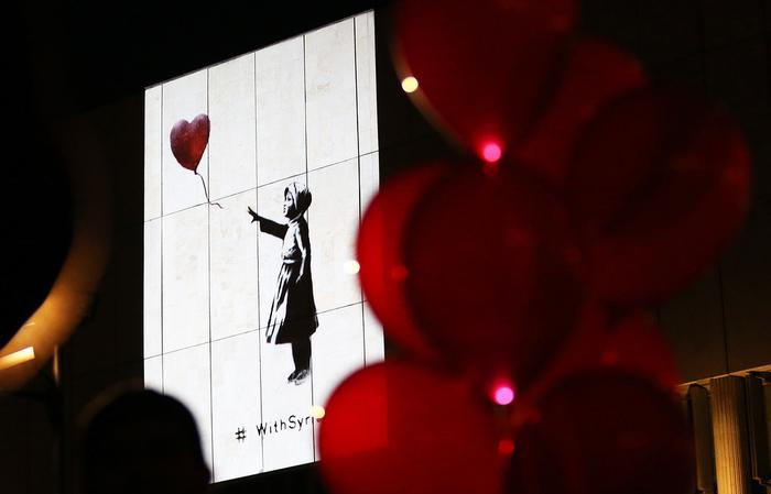 Знаменитый британский стрит-арт художник создал произведение в поддержку сирийских детей-беженцев в рамках благотворительного проекта WithSyria
