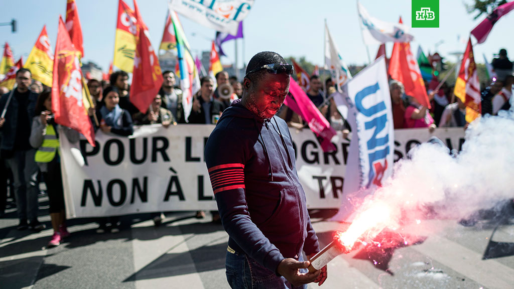 На улицы Парижа вышли более 100 тысяч человек, недовольных политикой Макрона