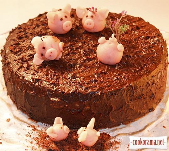 Тортик - в тему.( не мой) Учусь поросят делать из мастики.)))