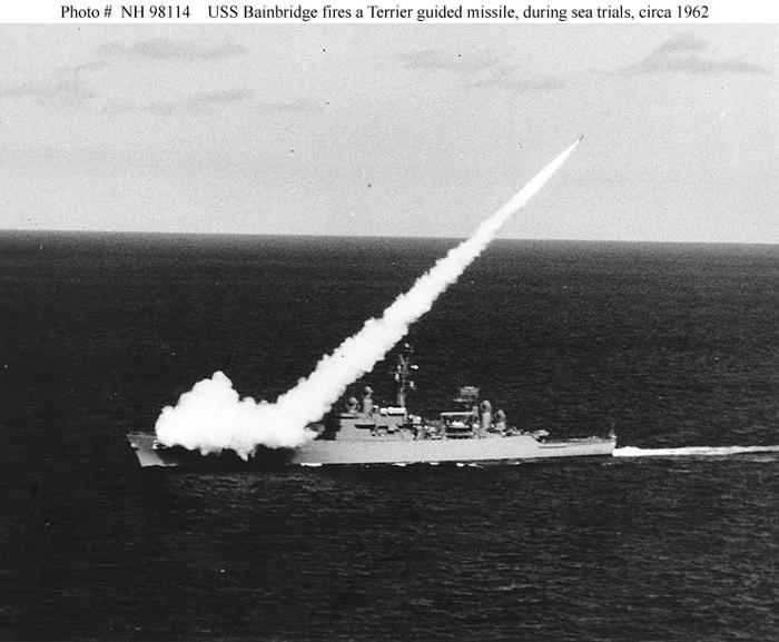 Когда РЛС американцев засекла бомбардировщики, АРК CGN-25 «Бейнбриджу» была поставлена задача - провести наблюдения за работой советских самолетов. Крейсер отделился от авианосной группировки и двинулся к полигону, где шли учения.