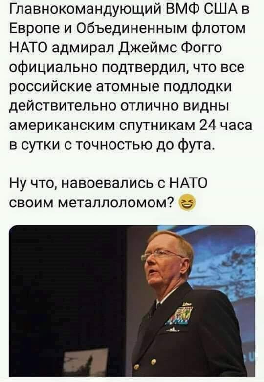 Только вот НАТОвские генералы почему-то считают наш ВМФ оченно даже боеспособным и мягко говоря приссывают...