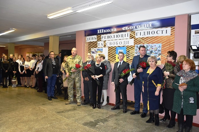 Председатель Донецкой облгосадминистрации Александр Куць, городской голова Андрей Панков, ученики и учителя почтили минутой молчания всех погибших во время Революции Достоинства.
