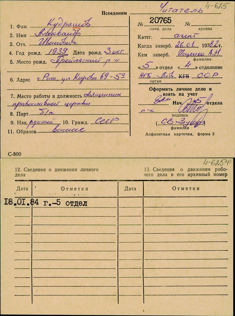 Митрополит Ризський и всей Латвии (РПЦ) Александр, он же Александр Иванович Кудряшов, оказался агентом КГБ СССР завербованный в 1982 году.