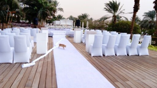 Довозим до места, где будет свадьба, там уже установили помост для шатра невесты, называется ,,хупа".