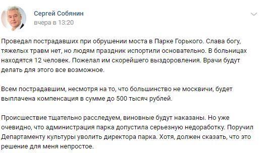 И с какой стати зажравшимся москвичам, которые сами же нарушили правила техники безопасности и перегрузили деревянный мост, платить по пол-ляма за фингал под глазом?