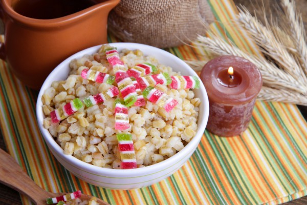 Наступили зимние каникулы, и мы жили в преддверии Рождества. Носить кутью по дворам — праздник души и желудка. Кутья в те времена была показателем достатка людей. У самых бедных — из кукурузной крупы со щепоткой сахарина. Хозяева среднего уровня варили праздничное кушанье из пшеничной или ячменной перловки - недроблёной очищенной крупы. Её замачивали на несколько часов в воде, потом заливали кипятком и ставили в русскую раскалённую печь. Каша вырастала в объёме раза в два, зёрнышко к зёрнышку, мягкая, хоть губами ешь. Остудив, вливали сахарный сироп, сладкий-пресладкий. Зернинки словно дрожали, нежно прикасаясь одна к другой. Сверху хозяйка бросала горсть изюма или несколько конфеток - подушечки, начинённые повидлом, карамельки или киевскую помадку. Кутья из риса была редкостью, её варили в зажиточных семьях. Но дети из дворов побогаче к бедным с кутьёй не заходили, так что мы только по разговорам знали, что бывает и такое угощенье.