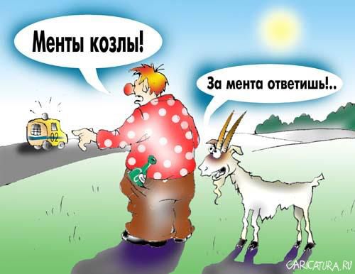 На место аварии, совершeнной машиной, в народе называемой "козёл", приехал сотрудник милиции, в народе называемый также.