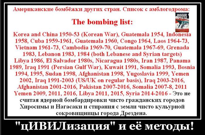 Да и про счастье, которое наступило с их помощью в Косово, Ливии и Ираке - тоже расскажите. И про то, как радовались вьетнамцы демократическому напалму и кассетным бомбам.