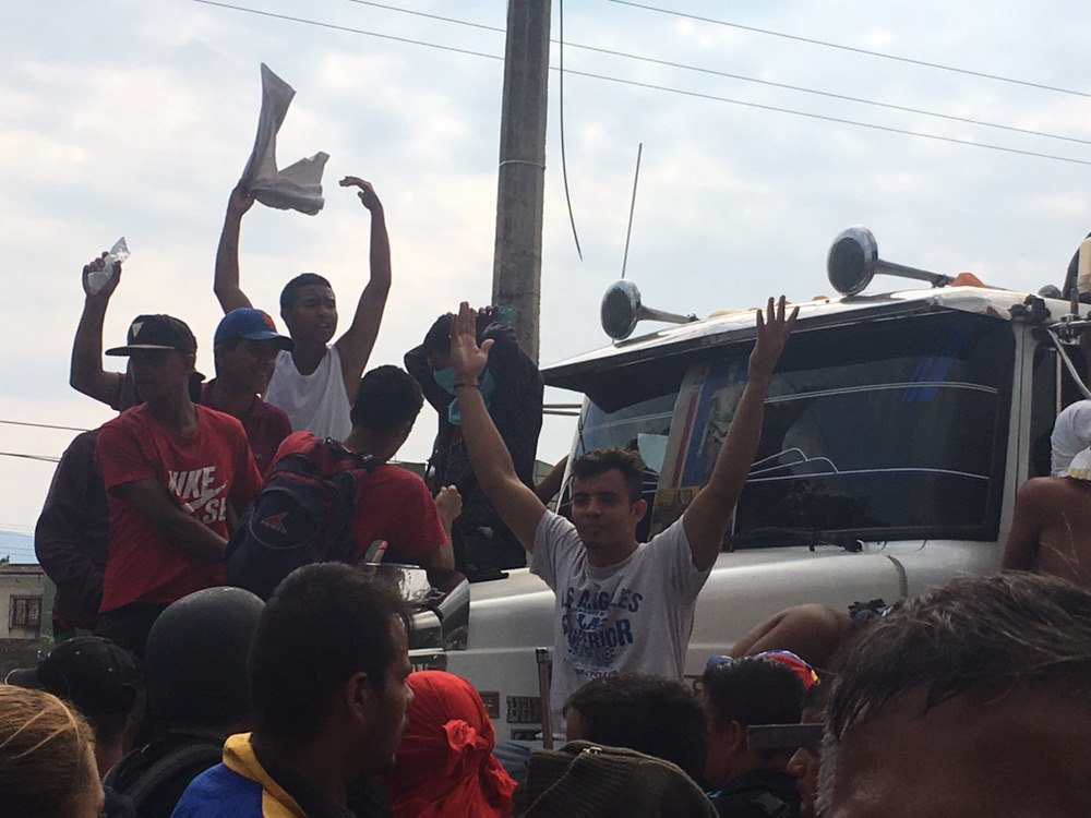 Накануне самопровозглашенный президент Венесуэлы Хуан Гуайдо написал в своем твиттере, что на границе с Бразилией один из грузовиков с гуманитарной помощью въехал на территорию Венесуэлы.
