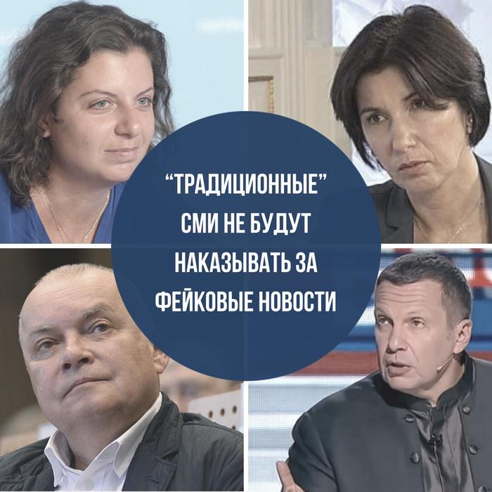 «Из-под действия законопроекта предполагается вывести традиционные медиа, режим регулирования которых на текущий момент достаточно эффективен против фейков», — заявил он.