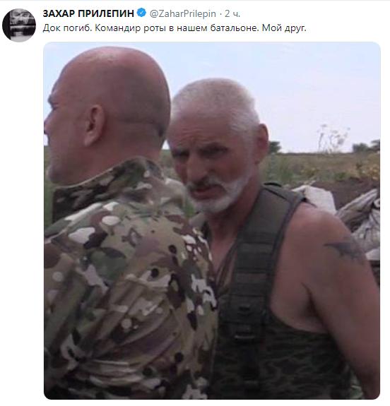 На Донбассе в зоне проведения ООС ликвидировали террориста "ДНР", друга Прилепина по прозвищу Док. Об этом в своем блоге сообщил сам писатель-боевик, передает "Диалог.UA".