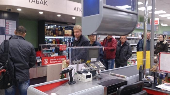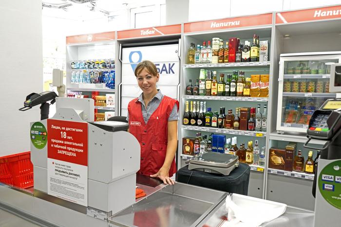 Как мы видим, улыбчивый продавец-каасир, табак аккуратно припрятан - крепкий алкоголь красуется на витрине...