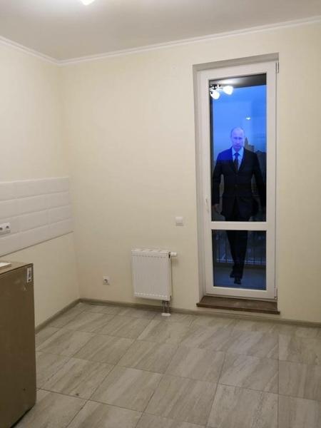 При том, что место для него есть: слева от двери более чем достаточно пространства - как раз над батареей, как это делают во всех нормальных домах, да и справа от двери место просматривается. Более того: дом явно построен по типовому проекту. Стандартные внешние стены на кухнях типового панельного дома бывают двух видов: с дыркой для балконной двери и окна или с дыркой только для окна (если на кухне нет балкона).