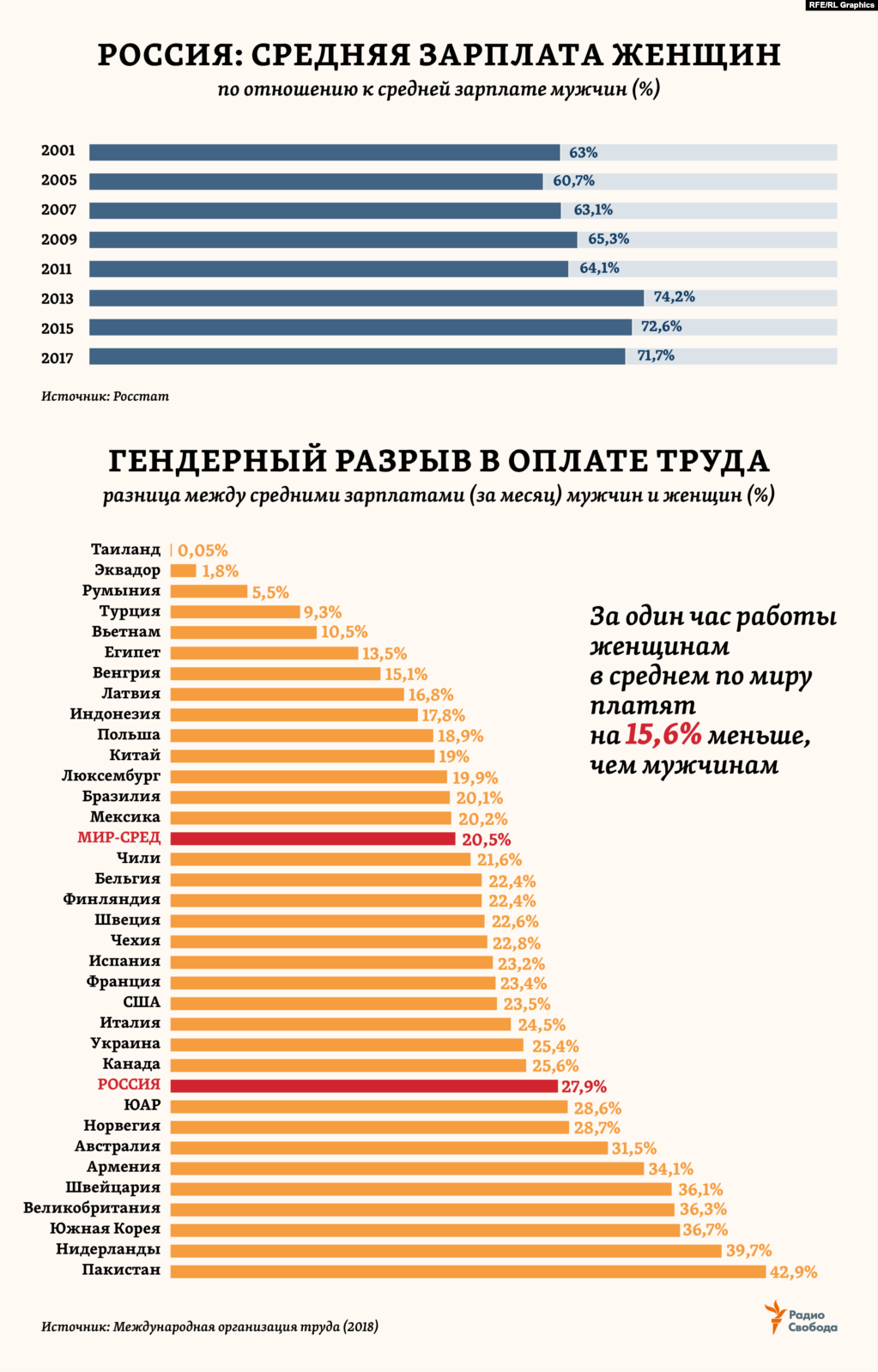 “Зарплата женщин в РФ составляет 70% от средней заработной платы мужчин”, - отмечала в начале марта 2019 года вице-премьер России Ольга Голодец.