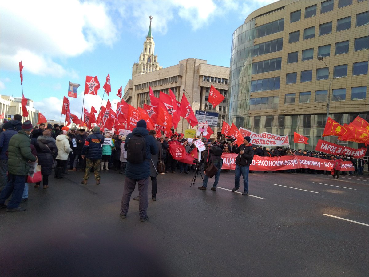Лидер Левого фронта Сергей Удальцов поделился: "Мне сон сегодня приснился, что 250 тысяч сюда придёт". Основатель "Нового социализма" Николай Платошкин, считающий мероприятие "решающим смотром", накануне писал: "Красная Москва должна завтра дать 100 тысяч митингующих". Организаторы оценили количество участников почти в 10 тысяч. По данным столичного главка МВД, число участников - 2,5 тысяч (из них около тысячи представляли коммунистические ячейки соседних регионов). Полиция по решению суда не допускает Удальцова на политические акции, поэтому он общается с журналистами перед входом, и подробно комментирует события в Twitter. "В ответ на преследования Павла Грудинина левой оппозиции надо активизировать свою протестную активность", - объявил он.