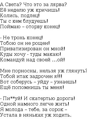 Она - Ванечка, ты со мной по человечески и я с тобой по человечески.