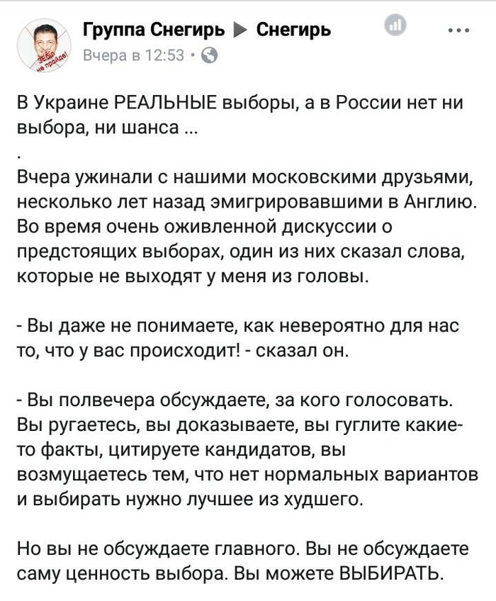 Украинские выборы возбудили многих. Все бродят вокруг трёх сосен и пытаются понять, какая из них выше и краше. Да какая для нас разница? Кто бы не победил, российско-украинские отношения испорчены на десятилетия, Крым не вернётся, а Донбасс ещё долго будет зоной нестабильности.