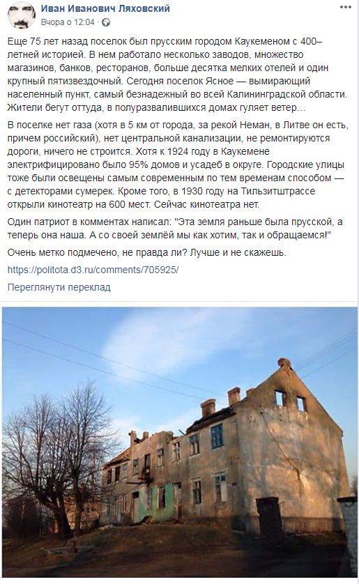 Примерно тогда же, 29 марта бывший начальник Аналитического управления КГБ СССР генерал-лейтенант Николай Леонов в интервью EADaily заявил, что он опасается за дальнейшую судьбу не только полуострова, но и других территорий - например Калининграда.
