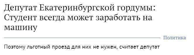 «Студенты всегда смогут заработать себе на машину» - такое заявление сделала депутат Екатеринбургской городской думы Елена Дерягина. Да, это тот самый скандальный депутат, известная резонансными высказываниями. Ранее она предлагала отменить бесплатные школьные обеды, потому что родители учеников младших классов в состоянии оплачивать их питание.