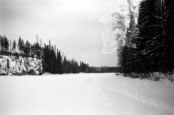 Откуда взялись на льду Лозьвы сугробы? Их нет ни на одном фото 1959 года, ни на одном фото наших дней, ни в реале. И не может быть. Снег на льду Лозьвы, как правило, лежит малым ровным слоем, и всегда так было.