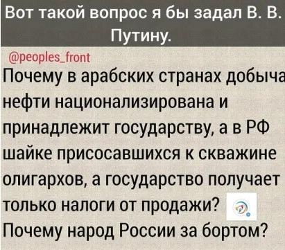 Если почемукать к Путину по части дележа доходов от нефти, то лучше вспомнить