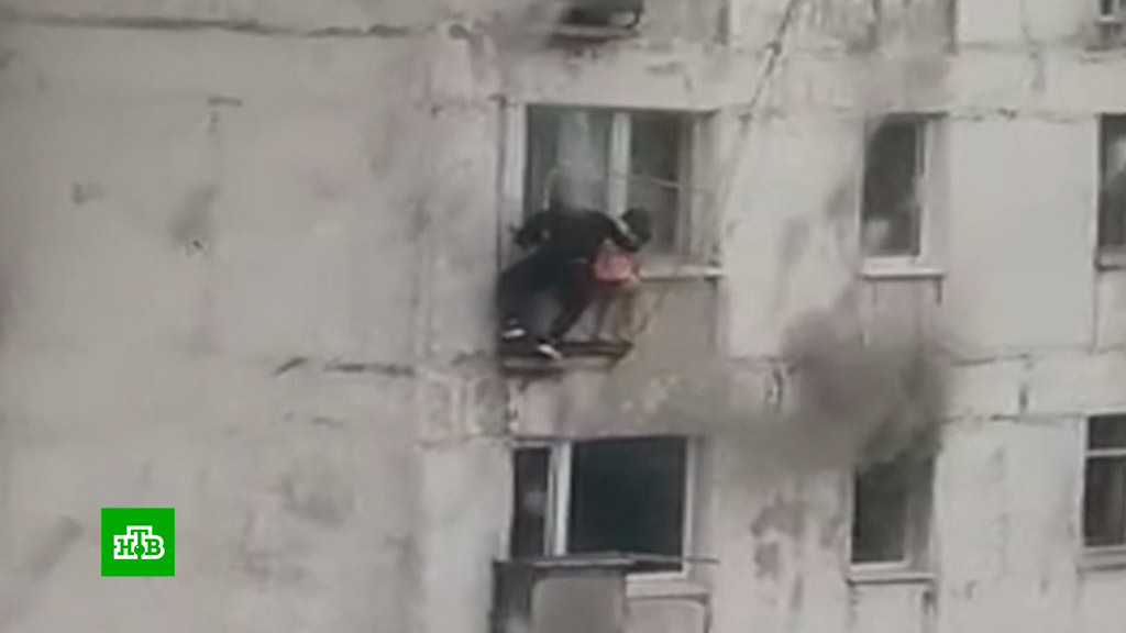 Жители дома растянули под окнами одеяла на случай, если Алексей не удержит ребенка. Шел сильный дождь. А девочка, судя по всему, была так напугана, что не могла как следует ухватиться.
