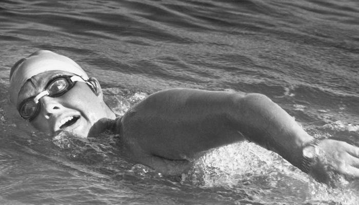 Линн Кокс во время тренировочного заплыва в Нортон-Саунд у Анкориджа, штат Аляска, готовилась к беспрецедентному плаванию с американского острова Малая Диомида на советский остров Большая Диомида Фото: Rob Stapleton/AP/ТАСС