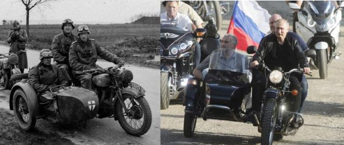 Ну и какой образ Путин пытается здесь воплотить? Я честно не понимаю. Какой мачо сядет за трехколесный мотоцикл с коляской? И вот это Ночные волки? Русские и правда восхищаются этим парнем? Может, я чего-то не понимаю в русской культуре?