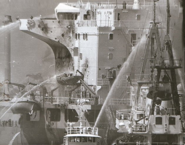 Выше - фото иностранного судна, окрасившего трубу советской символикой.