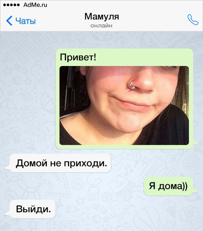 а так, сижу я, никого не трогаю, а мне вконтактик приходит фото со словами: мам! прости. И фото лица... а в носу вот ЭТО