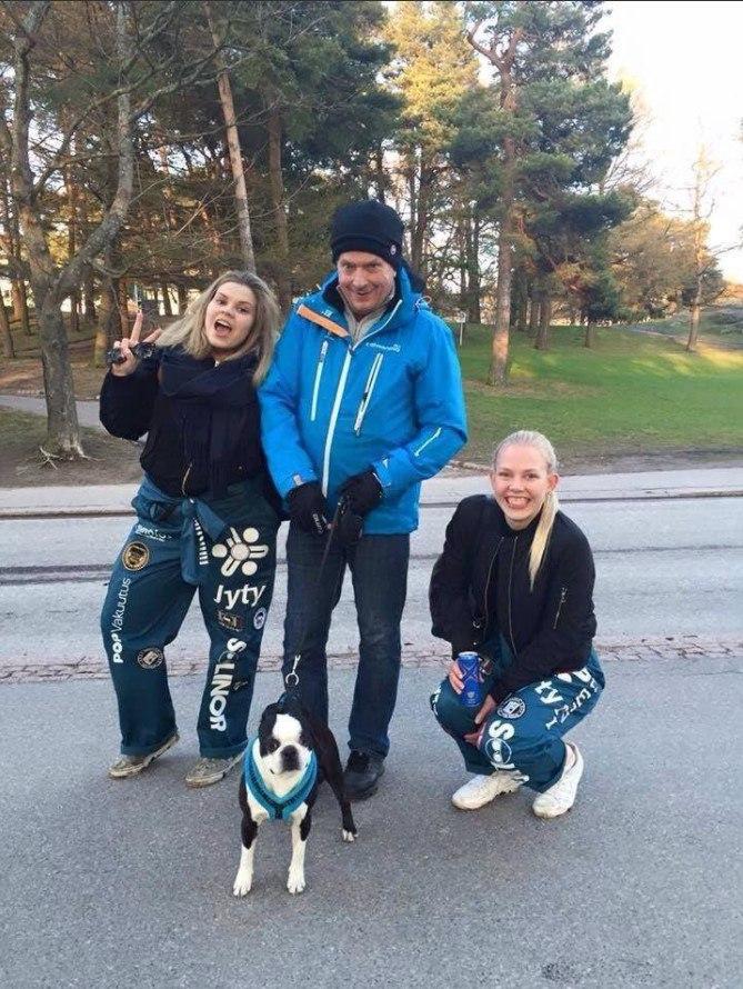 Президент Финляндии не с посторонними девочками гуляет. Та, которая на корточках, вылитая президент.)))