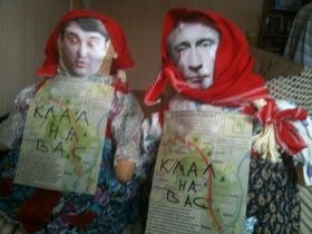 Чучела были с лицами премьер-министра Владимира Путина, главы Министерства транспорта игоря Левитина и президента компании Vinci Ксавье Улара. Также они сожгла "мешок со злом", в надежде на то, что "все зло, покушавшееся на лес, уйдет, и в 2011 году все будет хорошо".