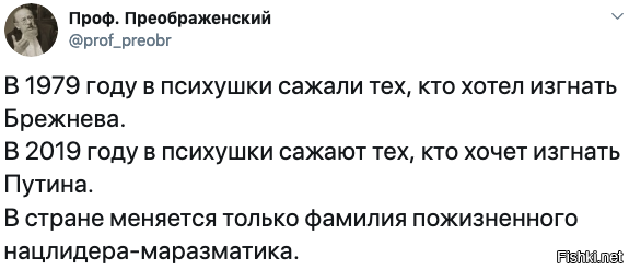 На самом деле, все это возврат к временам карательной психиатрии. В те времена сумасшедшими объявили тех, кого сейчас считают гордостью русской культуры. Вам не стыдно участвовать на стороне власти в новом витке ее насилия и лжи? Вы, похоже забыли, чем закончился предыдущий виток. Я напомню. Развалом СССР.