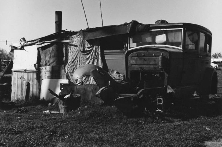 08. Так, теперь давайте посмотрим на то, на чём ездили в то время американцы. Обращает внимание то, что у многих семей на снимках есть персональные автомобили классного качества — вот например, дядька приехал на озеро отдохнуть.