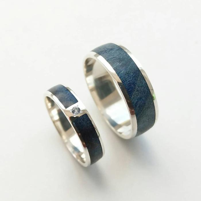 мне очень понравилась работа... Парные кольца из серебра с синей карельской березы и топазом. Возможна вставка других полудрагоценных камней и дерева