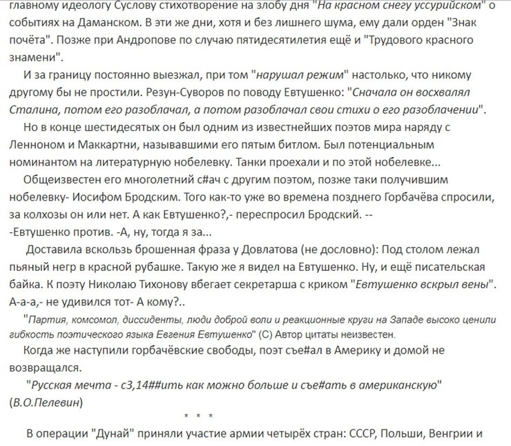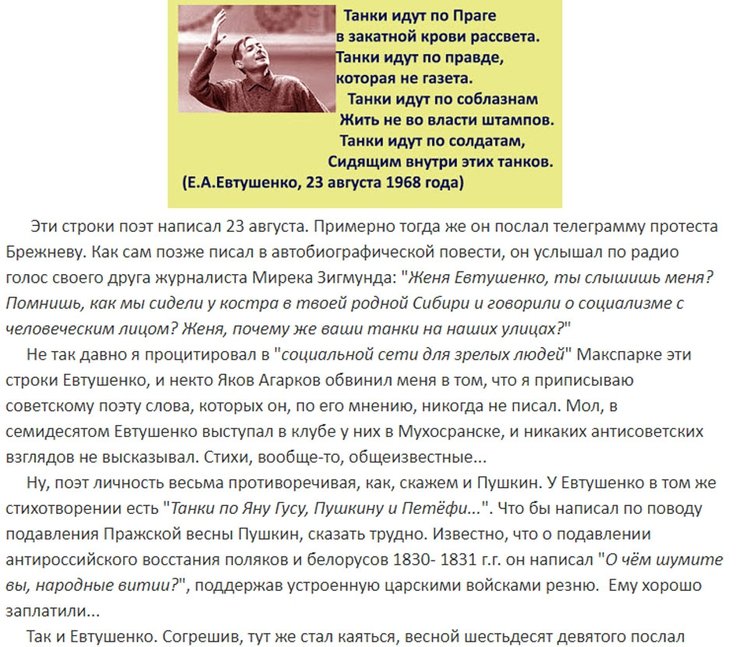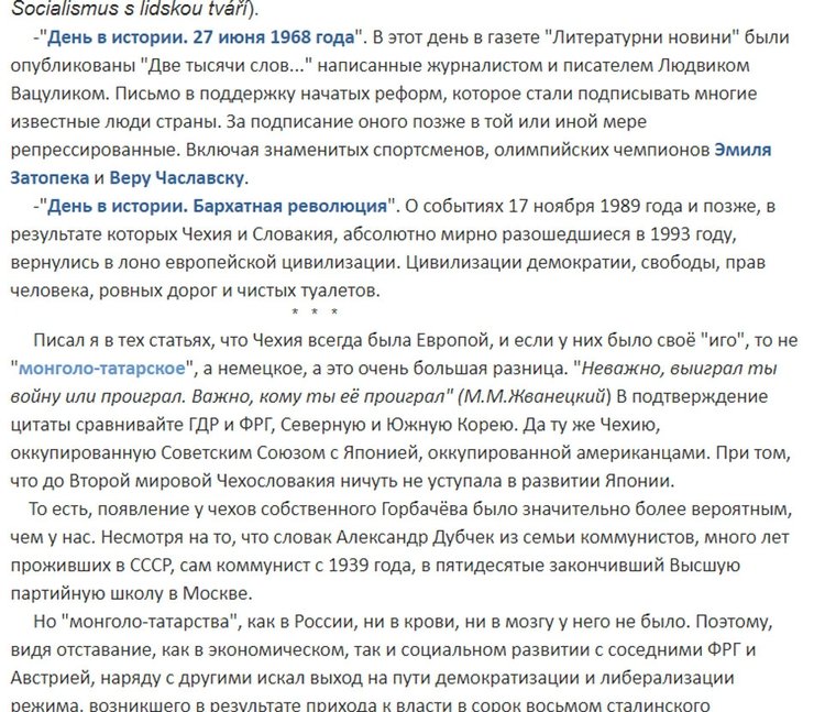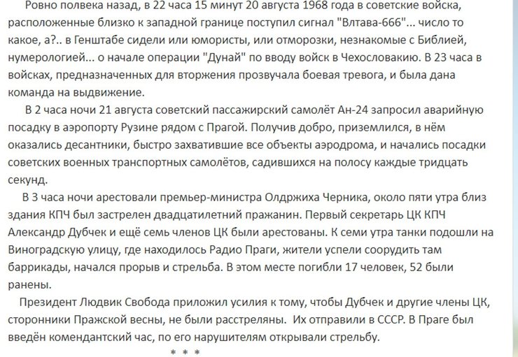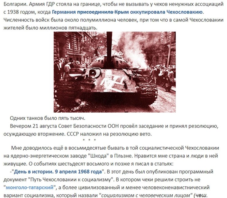 Ну, то, что в ЧССР была масса уродов в 1968-м, хорошо известно. На деньги Запада вовсю вещала радиостанция, ЦРУ и пр. финансировали печатание листовок, агентов западных спецслужб было тогда в ЧССР как сельдей в бочке.
