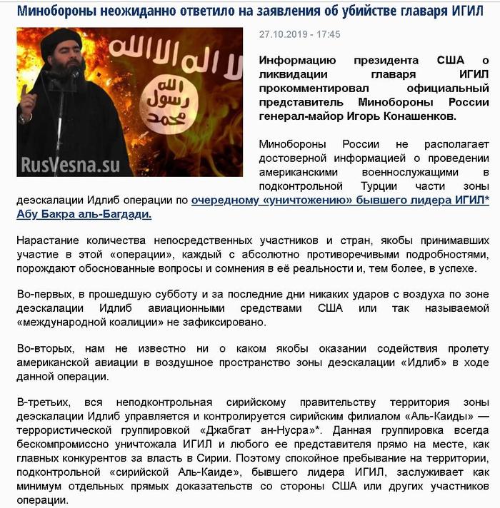 "Если он был главарём, то кем руководил, если США уничтожили ИГИЛ несколько месяцев назад?"