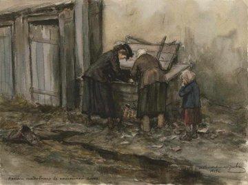 Разделывание мертвой лошади голодающими.