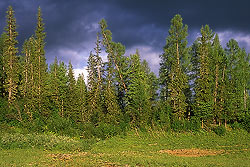 Изба смерти представляет собой деревянную избушку, поставленную на пеньках срубленных деревьев.