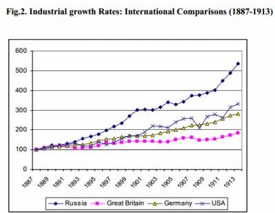 Кроме того, значительная часть промышленности, банков и 90% природных ресурсов Российской Империи принадлежало западным компаниям. Поэтому цифры темпов роста были еще более обманчивыми, чем может показаться на первый взгляд.