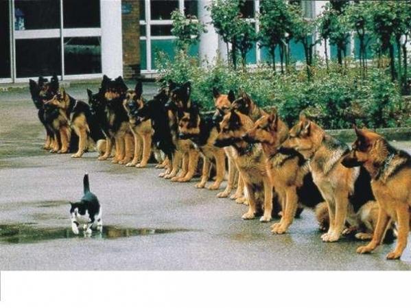собака не должна на неё реагировать, иначе экзамен не сдан - вот она и изгаляется на ними)