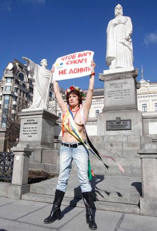 Правда, президент Украины Янукович временно заморозил повышение пенсионного возраста для женщин, чтобы провести разъяснительную работу среди населения. А такая работа нужна, потому что, например, вчера киевская пенсионерка Ольга Сергеевна Деда в возрасте 63 лет присоединилась к скандальному молодежному женскому движению FEMEN и провела одиночный митинг протеста с обнаженной грудью, держа плакаты «ТРУДный возраст» и «Чтоб вам, сукам, не дожить».