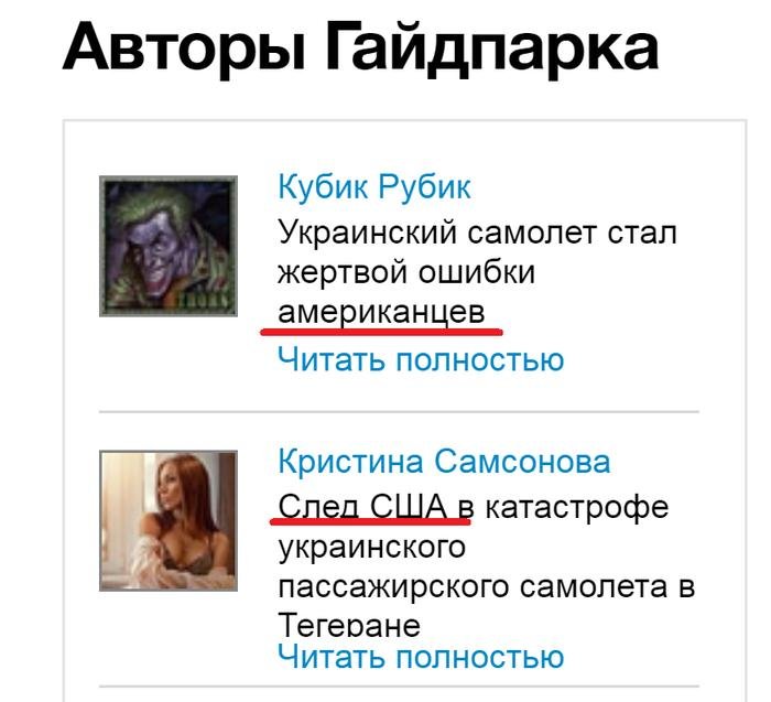 Я думаю, не исключено, что иранцы в эту конфликтную с США ночь, поторопились и по-ошибке долбанули по Боингу, приняв его за ответную американскую ракету.
