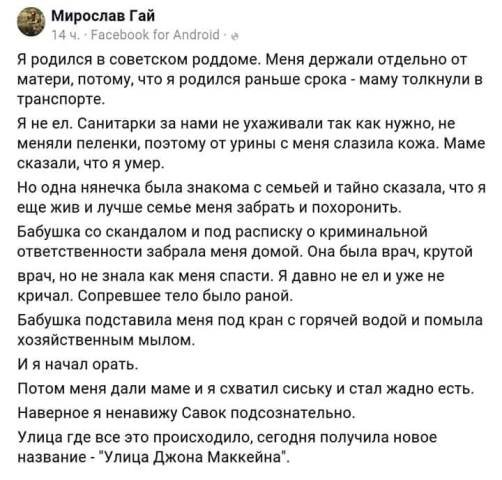 Его протухшему мозгу едва хватает навыка писать чушь, забывая, что он смердит то на свете лишь потому, что его предка, не сожгли в печах проклятого Рейха. Убогие все таки все эти антисоветчики и русофобы..