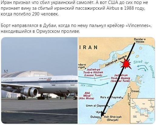 Правда персам далеко до США и Израиля, которые сразу признались, когда сбили гражданские самолёты.