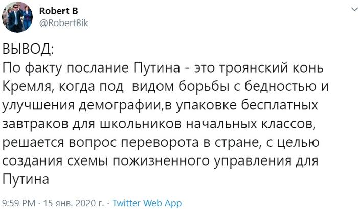 «Президент предложил небывалые меры, нацеленные на повышение благосостояния семей с детьми. На сегодняшний день в нашей стране 21 млн человек живут за чертой бедности, 67% из них — женщины с детьми, деньги им очень нужны. Семьи с детьми очень ждали помощи от государства и теперь, к счастью, они ее получат. С учетом предложенных изменений российская система поддержки семей будет уникальной для всего мира — ничего подобного нет в других странах», — сказала она.