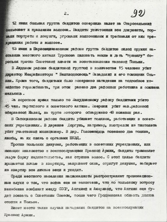 Также на сайте представлены наградные документы и свидетельства, которые являются подтверждением разрушений, совершенных немецкими оккупантами в городе и его окрестностях. В ведомстве предоставили и документы, свидетельствовавшие о террористической деятельности отрядов Армии Крайовой в тылу Красной армии на территории Польши, Белоруссии и Литвы в 1944–1945 годах.