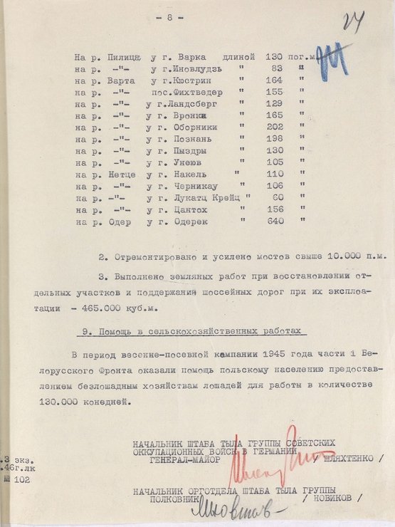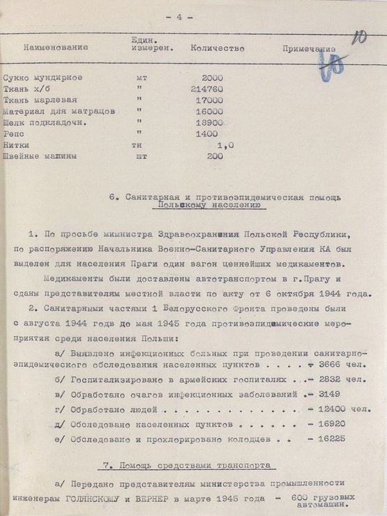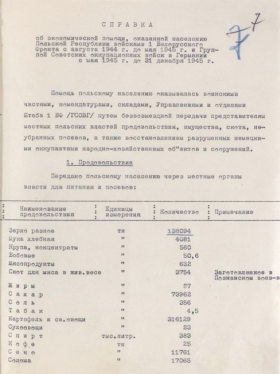 - говорится в справке "Об оказанной помощи населению Польской Республики 1-м Белорусским фронтом с августа 1944 года до мая 1945 года и группой Советских оккупационных войск в Германии с мая по декабрь 1945 года".