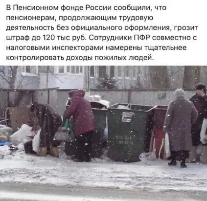 Налицо факт того, что государство российское желает избавится от пенсионеров: им обещано до 2 лет лишения свободы за дополнительные доходы....